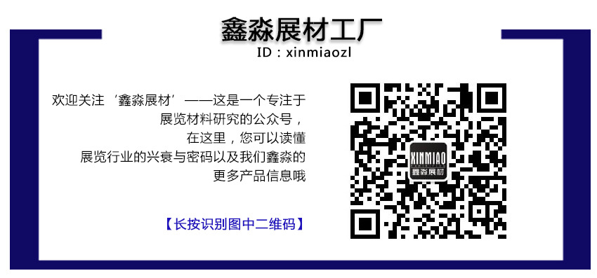 我们终将以更巧妙的搭建结构, 更坚固的组装效果供应为已任,以“诚信、合作、发展”的态度发展企业、服务市场,“质量至首,服务至上”是我们永恒的目标。我们相信,鑫淼在您的支持下,将不懈努力、不断壮大,为 大化您的利益、为展览行业的发展和会展经济的美好明天再添光彩!