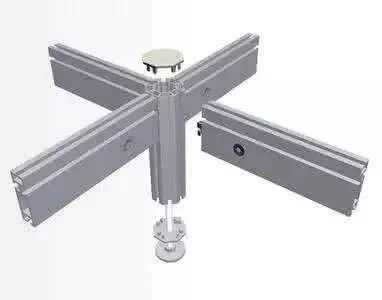 (3)调节脚:金属材质,主要功能是调节各立柱高低,消除地面不平度,使展台稳定。安装时旋转调节螺母即可。