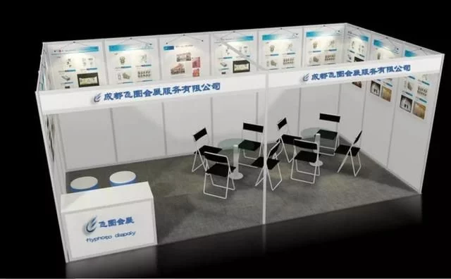 基本型标准展台是用铝型材、隔板等搭建成3m*3m或3m*6m等规格,通过连接锁连接可拆装而无任何附加部件的展台。