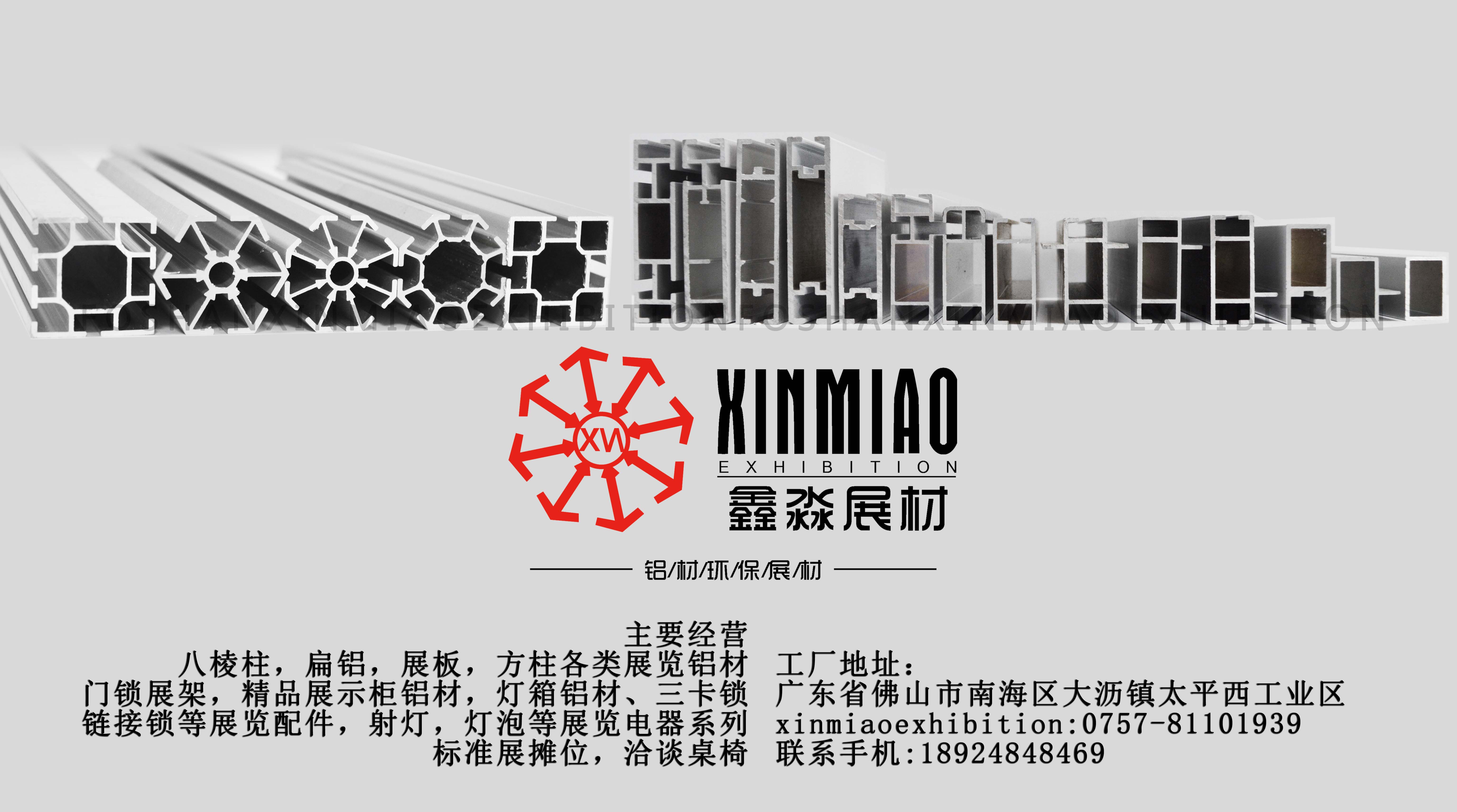 目前国内标准展台一般都采用德国的汉斯·施得格先生于1969年发明的八棱柱系列铝合金构件式型材结构。该系列型材轻便耐用、可重复使用,大大降低了使用成本。这种型材由扁铝、立杆、锁头组成。